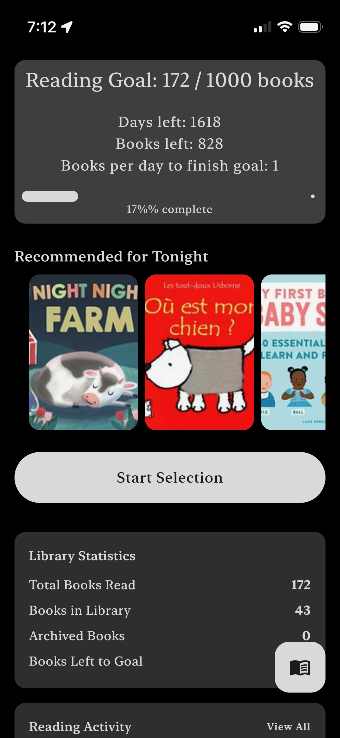 Thus, this book and reading tracking was born. I build this over a week with the heavy use of AI. On top of preventing reading the same book too many times, I wanted it to be a way to track our “1000 books before kindergarten” goal.