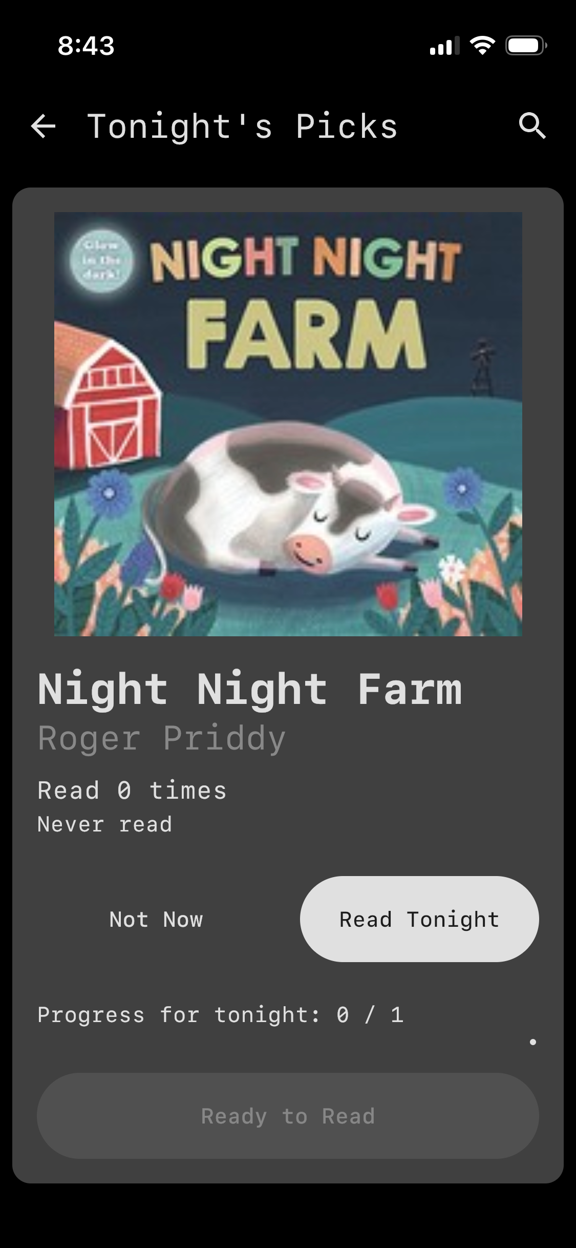 It has a Tinder-esque book selection UX, book likes and dislikes, and, consequently, a obvisouly algorithm for what to read tonight.